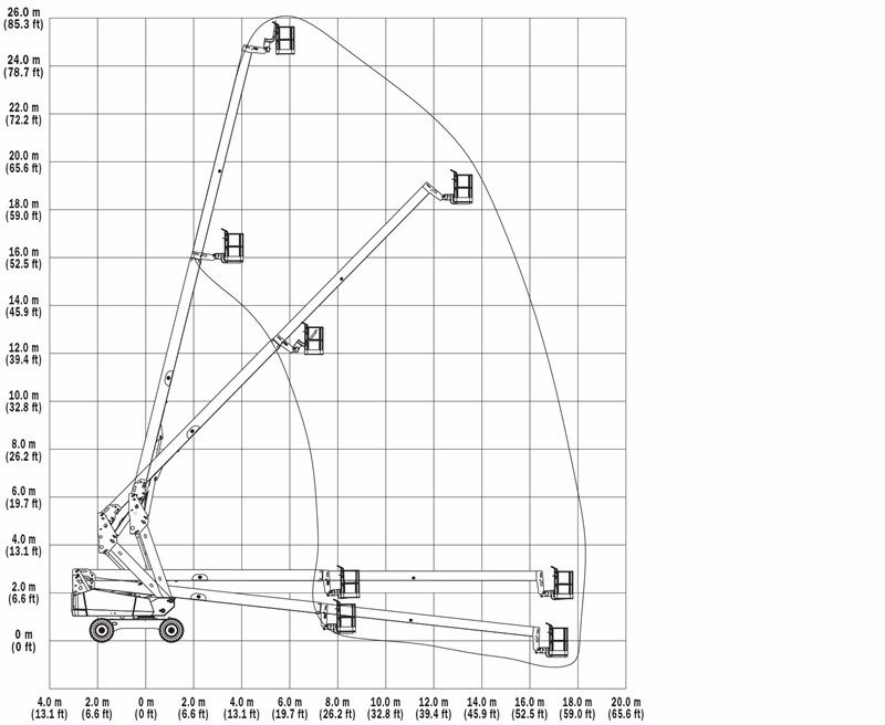 可承受10,523千克(23,200磅)載重的最輕24米自走式直臂高空作業平臺